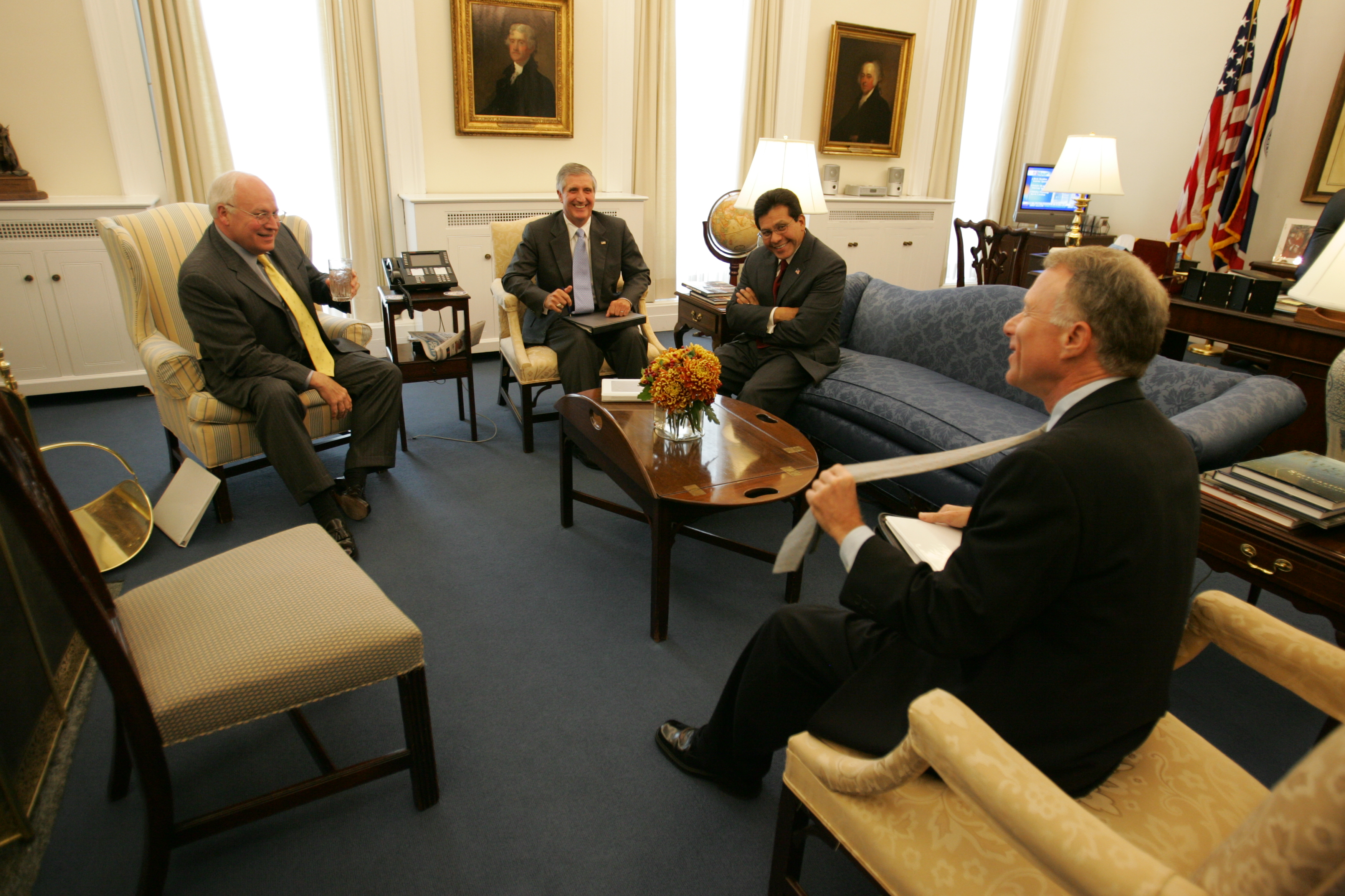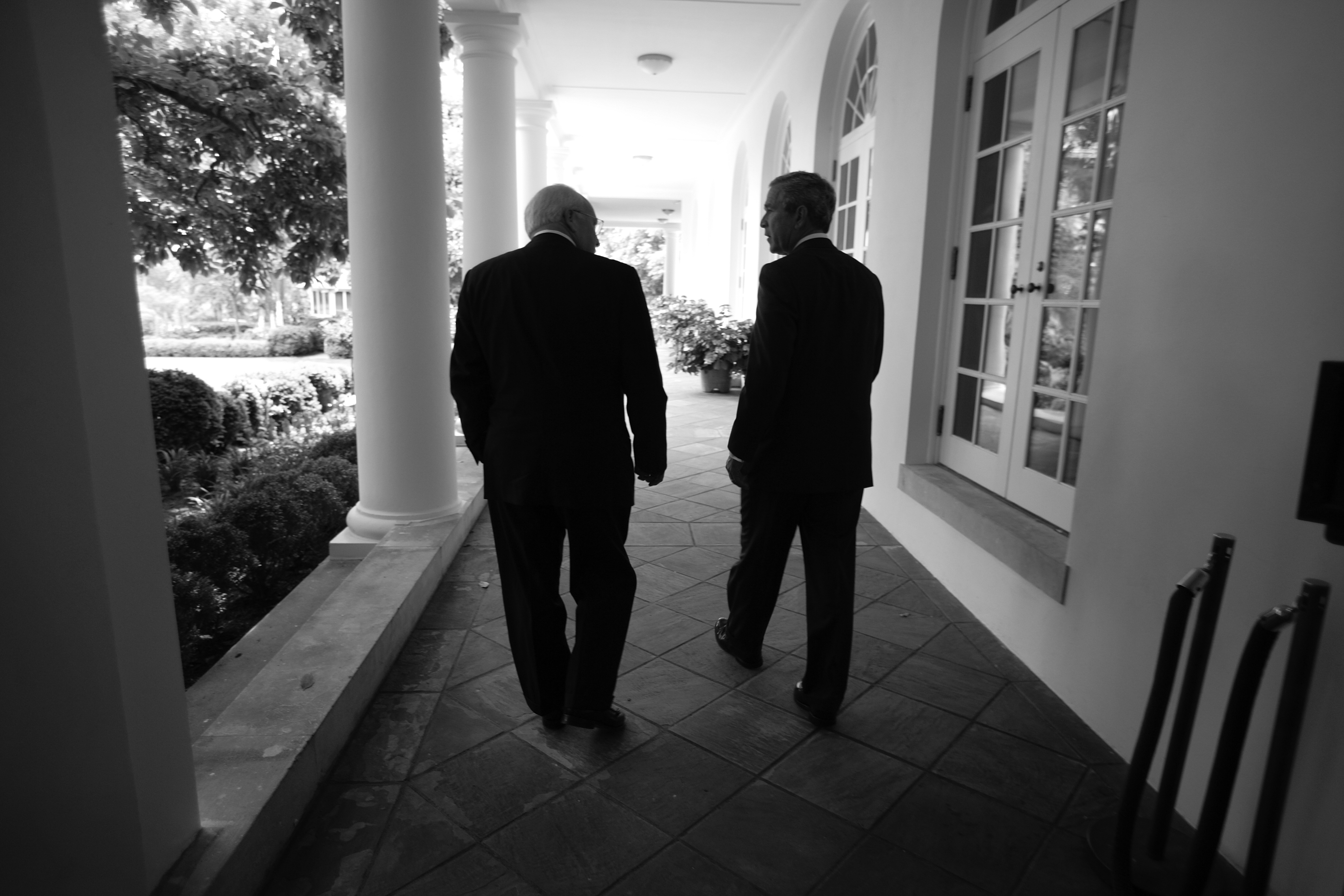 The entire cache of photographs released yesterday can now be seen on the National Archives’ Flickr account. The collection includes a number of intimate photos of Cheney and President George W. Bush. Others include rare moments from inside the vice president’s office, while a third set of photographs detail the role of David Addington, Cheney’s top attorney and a senior advisor who worked with the vice president on national security issues.