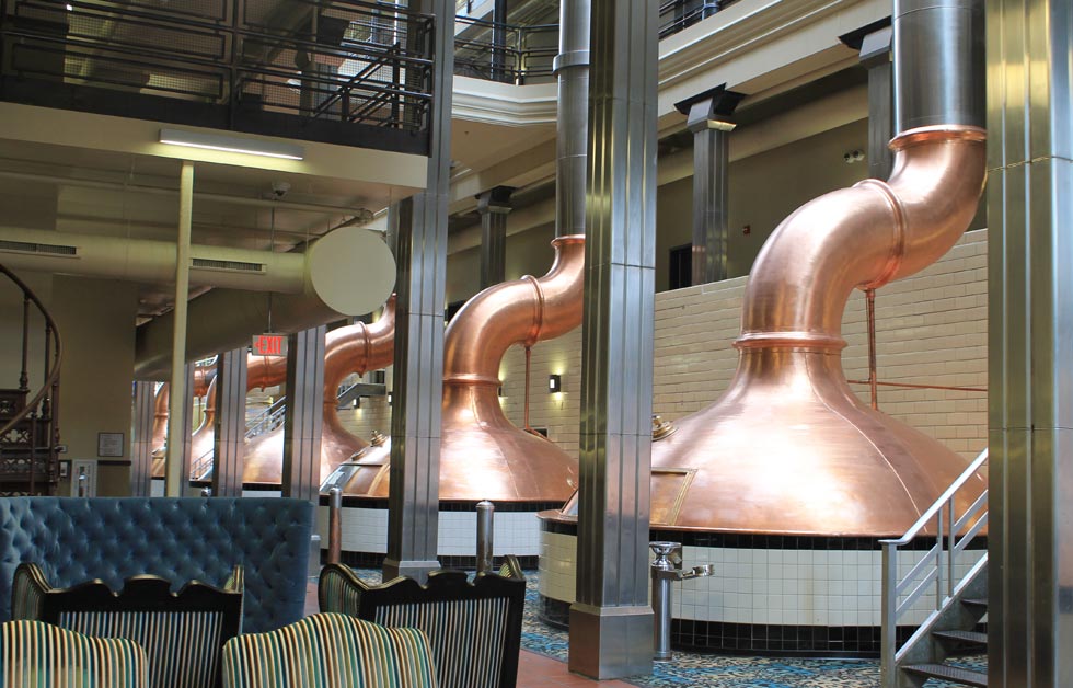 The Pabst brewery, whose oldest known parts date before 1882, ultimately closed its doors in 1996 after a fierce legal battle over cuts to health and death benefits for many of its former employees. The company has since sold the building, and it was reopened after a renovation as The Brewhouse Inn & Suites. (NOTE: Move the slider left and right to see the full before and after photos.) Then: Lena Bertucci/Courtesy Milwaukee Public Library – Now: Courtesy of The Brewhouse Inn & Suites