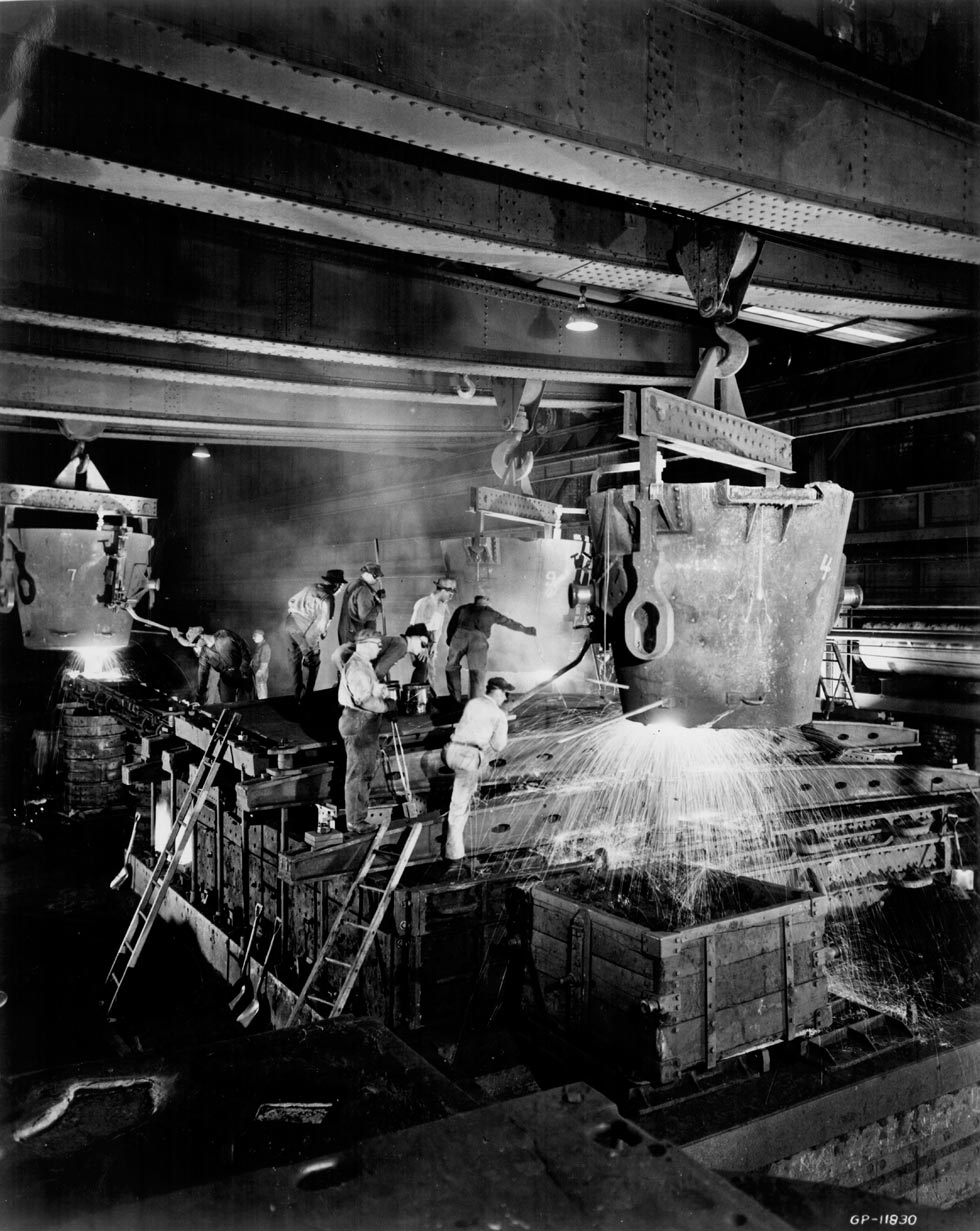 The Falk corporation was one of several Milwaukee factories that had its own foundry. Here, workers pour molten steel into a cast Falk used to make the wide variety of industrial gear drives the company manufactured. Falk was sold to Milwaukee-based Rexnord in 2005, and still exists today as one of its parent company’s brands. Though jobs have been cut in recent years, about 2,500 of Rexnord’s 7,300 employees are still based in and around Milwaukee. The foundry, on Canal St., remains operational. Courtesy Milwaukee Public Library