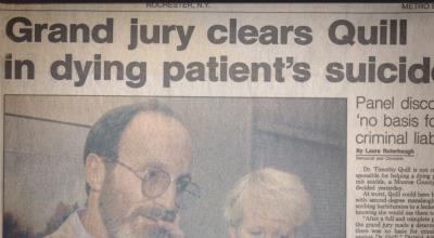 A grand jury ultimately declines to indict Dr. Timothy Quill, a palliative care physician, for prescribing a lethal dose of barbiturates to a terminally ill patient, who subsequently died. Quill said the woman, who was dying of leukemia, had expressed her wish to die and that he had directed the woman to the Hemlock Society. She then asked Quill for medication she knew would end her life. The case sparked a nationwide debate about doctor-assisted suicide.