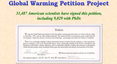 What becomes known as the “Oregon Petition” is organized by the Oregon Institute of Science and Medicine, a small group in the northwest, to collect signatures from scientists who believe that there’s “no convincing scientific evidence” that climate change is manmade. The petition boasts, at last count, more than 31,400 signatures — but only 39 are climatologists, and several environmental groups critical of the petition found questionable names, including that of Geri Halliwell, better known as Ginger Spice, on the list. The petitioners, though, say they remove fraudulent names when they find them. The petition is frequently cited by climate-change skeptics as evidence of consensus on the issue, and it’s still gathering signatures.