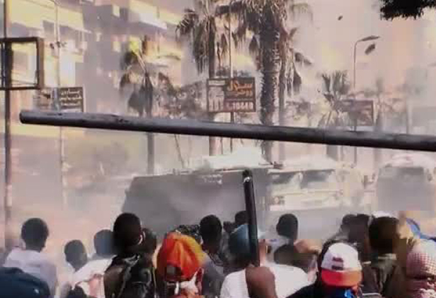 Armored vehicles confront Coptic Christian protesters at Maspero on Oct.9, 2011. (FRONTLINE)