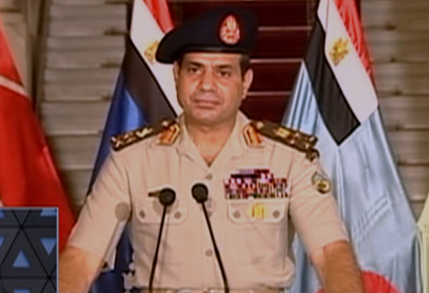 Sisi appears on state television to ask Egyptians to take to the streets again in support of the military’s fight against terrorism on July 25,2013. (FRONTLINE)