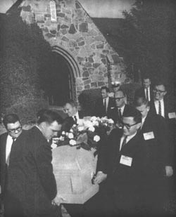On the same day that John F. Kennedy is laid to rest at Arlington National Cemetary, Lee Harvey Oswald is buried at Rose Hill Burial Park in Fort Worth, Texas. Robert Oswald remembers arriving at the chapel, hoping to have some “private moments.” The chapel was empty. Seven reporters had carried the coffin to the gravesite. “I was totally disgusted at what had happened. We got back into the car…and drove down to the cemetery plot. The gravesite was surrounded by uniformed police officers and Secret Service agents and a tent…. Even at one point there was a reporter who tried to interview Marina…my blood pressure was pretty high.”