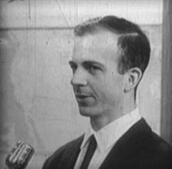 One of the boarders at the rooming house recalls that on this night, Oswald intently watched a television news story about President Kennedy’s scheduled visit to Dallas.