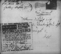 Photo of mail order form with Oswald’s handwriting, ordering a rifle in the name of A. Hidell