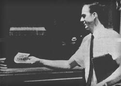 Photo of Oswald handing out the “Hands off Cuba” leaflets