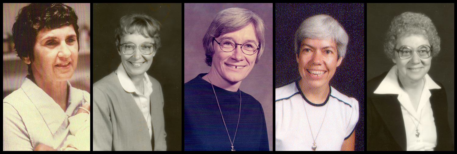 Pictured above, from left: Shirley Kolmer, Barbara Ann Muttra, Mary Joel Kolmer, Agnes Mueller, Kathleen McGuire. (Source: Adorers of the Blood of Christ)