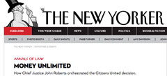 The New Yorker’s Jeffrey Toobin explores how Supreme Court Chief Justice John Roberts artfully “orchestrated” the 2009 Citizens United decision, transforming the limited nature of the original case into a vehicle for rewriting decades of constitutional law. “As the Chief Justice chose how broadly to change the law in this area,” Toobin writes, “the real question for him, it seems, was how much he wanted to help the Republican Party. Roberts’s choice was: a lot.”