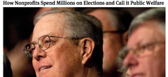 ProPublica’s Kim Barker investigates how 501(c)(4)s – nonprofits that enjoy tax-exempt status for promoting “social welfare” have emerged as the main conduit for anonymous big-money contributions in political races. Unlike SuperPACs, 501(c)(4)s don’t have to disclose their donors. And although they are allowed to partake in some political activity, they are required to be primarily engaged in social welfare. Barker’s investigation finds that dozens of these groups “do little or nothing to justify the subsidies they receive from taxpayers” and are using a range of tactics to underreport their political activities to the IRS. How do they funnel money into campaigns? And why are efforts for more transparency falling short?