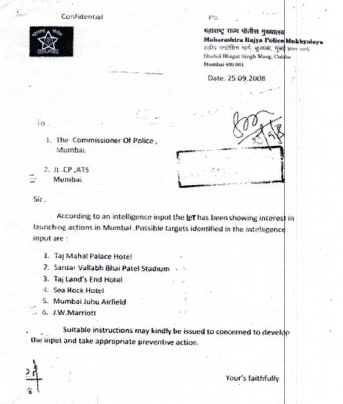 Sir, According to an intelligence input the LeT has been showing interest in launching actions in Mumbai. Possible targets identified in the intelligence input are: