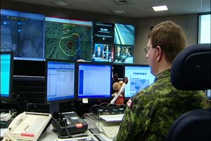 A NORTHCOM military intelligence analyst at work in Colorado Springs, Colo.