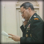 Trainor: Colin Powell, of course, becomes a major player in in the Gulf War, because he was the Chairman of the Joint Chiefs of Staff, exercised enormous power in that role as the principal military advisor to the President. And Powell was a man that was badly scarred by his experience in Vietnam, as were most of the generals that fought in the war. They saw the U.S. strength and power dissipated and lots of casualties in that war, which was of an inconclusive nature. And they said to themselves, never again, we will never allow the politicians to make the military a plaything. So when the build-up took place on the Kuwaiti border there was some discussion about sending a signal to Sadam Hussein as a deterrent. There was talk about speeding up an aircraft carrier to get it there, to move some ships with military equipment that were in the Indian Ocean up to the region, to fly some airplanes out there. Traditional things that are done in a crisis to show American concern and that America would get involved if the crisis went into any sort of aggression. But Colin Powell was very hesitant on that, and did not support that approach because he took the position, look if we take these deterrent actions and he still crosses the border then we find ourselves either having our bluff called or in a war that we may not want to get involved in. So he opposed it.