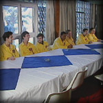 And so they took me into a room, it was all very bright, sat me on a chair, and they went through a practice, made us do a practice, because they, a guy, read out, (chuckles) read out some of the answers, ...