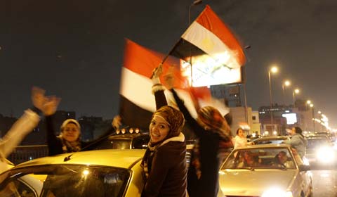 “In the early hours of the first day of a new Egypt, revelers are still marching, mingling and dancing around the traffic circle in Tahrir Square.” Charles M. Sennott, "The First Day of a New Egypt" (FRONTLINE)