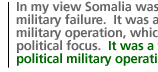 In my view Somalia was not a military failure, it was a well-run military operation, but which had no political focus. It was a failed political military operation.