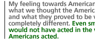 My feeling about the battle was that it was a right fight, an obligation. But my feeling towards Americans is that what we thought the Americans were and what they proved to be were completely different. Even small boys would not have acted in the way the Americans acted.