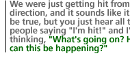 I didn't. I didn't see what was going on, I just heard Sergeant Eversmann say, "He's going into shock, we gotta get him outta here." And at that point I did not know who it was because he was on top of me. And as you were driving you just hear, it sounded so trivial, and it's so comical, not comical, but you just hear people saying "I'm hit, I'm hit!" and it just kept going, people were saying "I'm hit," I'm thinking "Oh, my God!"
