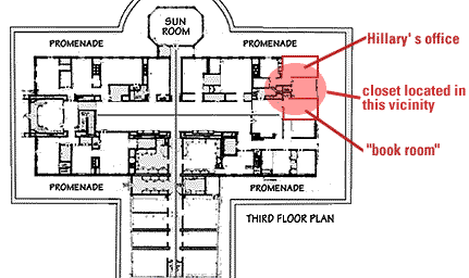 Shortly after Vince Foster's death on July 20, 1993, a group of files were moved from his office to a closet near Hillary's office in the Clintons' personal quarters on the third floor of the White House.