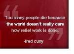 This site is a good starting point for some general background on recent disasters and humanitarian crises and how humanitarian aid response. ReliefWeb is a project of the UN Department of Humanitarian Affairs and aims to enhance logistical, tactical and strategic decision-making in the delivery of humanitarian aid through reliable informatoin on the situation, actors and resources.
