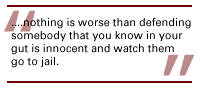 And that's the worst possible thing because nothing is worse than defending somebody that you know in your gut is innocent and watch them go to jail. Nothings worse for a lawyer than that.