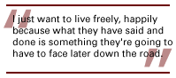 I just want to live freely, happily because what they have said and done is something they're going to have to face later down the road. They don't have to worry about me retaliating against them for what happened. Obviously then the Good Lord handle it, he'll handle it, he knows best. I just ask him for peace, joy and happiness and put me on the right track.