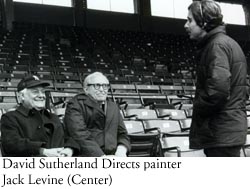 Sutherland's innovative approach to documentary filmmaking--making the artist both subject and host without intervention of narrator or interviewer--is eminently suited to this articulate and outspoken individual who talks with a charming mix of erudition and the street lingo picked up during his childhood on the streets of Boston's South End. Sutherland's technique creates an exceptionally intimate relationship with the film's subject. . . eliciting startling revelations about the man and his art. Following his well-known series on the Kings and Sages of Israel, Levine has recently completed "Saul and David" in which he depicts himself as King Saul. . . ''Because I'm bad. . . I see myself as Saul, angry at the young David about to succeed me. . . I feel that way about the new generation of artists." Levine talks about his flesh paintings while standing before a nude model at the Copley Society of Boston, and reveals his passion for painting human flesh: "I use every excuse I can to work it into my oeuvre."