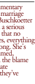 For the farm is invested with so many symbolic meanings: When the Buschkoetters married, living on a farm and raising a family was the bucolic dream of the future they shared. Juanita was going to stay at home and take care of the six children the couple planned to have; Darrel would farm the land and support them. At first, much of the acreage that he farmed would be rented land, but Darrel's long-range plan was to take over his dad's nearby farming operation when his father retired. Years of economic strain and frustration have, however, left both members of the couple feeling humiliated and demoralized.