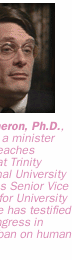 I suppose moral authority comes with the probability of the questions one asks. One can speak out of a faith tradition as a Christian and one can speak among Christians and Jews and Muslims who share much in common in this discussion in which there are some ... convictions about the identity of what it means to be human. One can speak something more generally. But the questions are what count ... What does it mean to be human? How does it affect what it means to be human? What is the relative significance of our basic biological functioning and the human spirit? What possible significance is there in sundering ... the social identity of our family units?