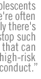 At the end of discussions about adolescents who have made the wrong turns, we're often presented with people who imply that there's nothing that can be done to stop such episodes. In fact, there are actions that can play an important role in decreasing high-risk adolescent conduct: