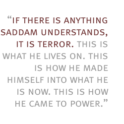 To keep with the subject of terror, tell us about being shown the tape [of Saddam purging the government of those he viewed as "traitors" when he took power.]