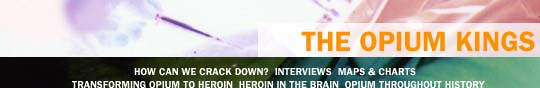 home | interviews | how can we crack down? | maps & charts | transforming poppies to heroin | heroin in the brain | opium throughout history | viewer reactions | press | tapes & transcripts | explore FRONTLINE | pbs online | wgbh