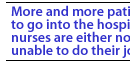 In the early days of the American hospital, patients were afraid to enter those venerable institutions because they were terrified they would leave dead. It was the development of modern nursing that in fact made hospitals safe for patients. Today, we are truly going back to the future. More and more patients are afraid to go into the hospital because the nurses are either not there or unable to do their job.