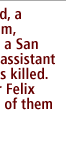 Well, it was frightening, in about a six month period, a player was killed on our team, Alexander Osache, who was a San Jose Sharks pick. The team assistant coach, Vladimir Bouvich, was killed. And our team photographer Felix Oliviov, were all killed. Two of them gunned down Mafia-style, five bullets to the head in front of their wives. The player, we're still not sure how he died. He died in his room, in his apartment . . .