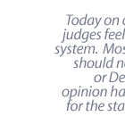 Today on our court, most of the judges feel like this is not a good system. Most of us feel like judges should not run as Republicans or Democrats, which is in my opinion has been a terrible blow for the stability of our judiciary. As the state has changed from one party to the other over the last decade, over 200 of our state trial and appellate judges have been defeated in general elections. In almost every case for no other reason that I can identify other than they were running on the party that was not popular. . .