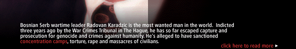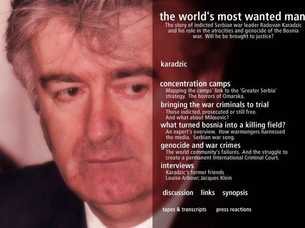 karadzic .  conentration camps .  trying war criminals .  bosnia .  genocide & war crimes .  interviews
