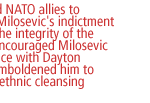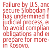 • Failure by the U.S. and NATO allies to secure the indictment of Slobodan Milosevic has undermined the integrity of the judicial process, encouraged Milosevic to avoid compliance with Dayton obligations and emboldened him to prepare for more ethnic cleansing in Kosovo.