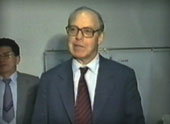 The first U.S. presidential envoy to visit North Korea, Perry tries to convince Pyongyang to abandon its nuclear and missile development programs in exchange for improved diplomatic and economic relations with the U.S. His trip, during which he hand-carries and delivers a letter from President Clinton to Kim Jong Il, is the culmination of his policy review.