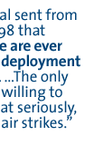 That was the kind of message that nobody had said publicly up to that time in those kind of terms. It had not been clear to many of us on the outside that the administration was fully and totally and 100% committed to winning, even if that meant putting in ground forces. The message that Berger left on June 2 was that we will, if necessary, use ground forces. We don't think it's necessary yet, but we will if necessary.