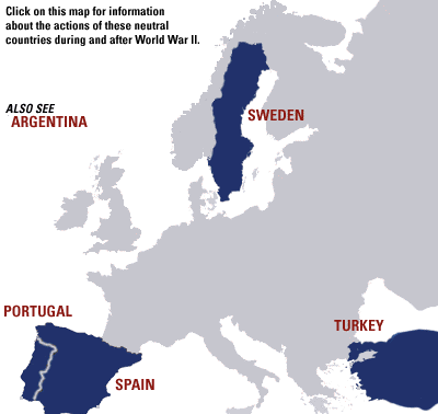 During World War II Switzerland's transactions with the Nazis were the largest of any neutral country. However, the Eizenstat Report - the U.S. government's historical study of what happened to gold and assets plundered by the Nazis - faulted the neutral countries of Argentina, Portugal, Spain, Turkey and Sweden for also profiteering with the Third Reich.