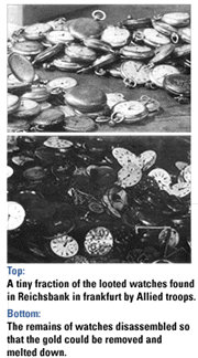 Toward the end of the war, when other neutral states refused to purchase gold directly from Germany, Switzerland continued to carry on this highly profitable trade. That gold generally came from two sources - the gold reserves of the central banks of the occupied countries and gold taken from individuals - including gold dental fillings extracted from corpses.