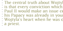 The central truth about Wojtyla's faith is that every conviction which John Paul II would make an issue central to his Papacy was already in young Karol Wojtyla's heart when he was ordained a priest.