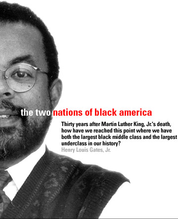 Today, America has the largest black middle class in its history, yet half of all black children are born into poverty. Have the walls of segregation tumbled down, only to be replaced by walls of class? FRONTLINE correspondent and Harvard University professor Henry Louis Gates, Jr., grapples with the issues facing the 'two nations of black America' as he takes a personal journey that measures the distance between the beneficiaries of affirmative action and those they left behind.