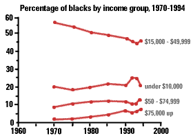 AN ANALYSIS:  PERCENTAGE OF BLACKS BY INCOME GROUP 1970-1994