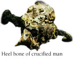 ... [E]vidence of crucifixion in archaeological form has been rare until the discovery that was made in recent times of an actual bone from a coffin which was found to have a nail still stuck in it. This is apparently someone who actually did experience crucifixion. .... Now what apparently happened was the nail that had been used to put him on the cross by being placed through his heel bone had stuck against a knot or bent in some way and so they couldn't pull it out without really causing massive tearing of the tissue and so they left it in, and as a result we have one of those few pieces of evidence that show us what the practice was really like.