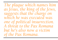 And that seems to be what happened with Jesus... It's probably the case that the plaque that was nailed to the cross is one of the few clear pieces of historical evidence that we have. Precisely because it reflects a legitimate charge upon which the Romans would have called for execution and it stands out so starkly, and in fact it stands in some tension with some of the rest of the story, that it could only be supposed to have been left there because it reflects one of the central events that really happened. The plaque which names him as Jesus, the king of the Jews, suggests that the charge on which he was executed was one of political insurrection. A threat to the Pax Romana but he's also now a victim of the Pax Romana.