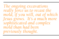 I would locate Jesus more in the middle-class than in the lower middle-class, than in the lower class of the period. Certainly he would have been multi-lingual, and that causes us to rethink the entire literary heritage and rhetorical heritage that Jesus would have brought to his ministry. So that the discoveries at Sepphoris and the ongoing excavations really force us to recast the mold, if you will, out of which Jesus grows. It's a much more sophisticated and complex mold than had been previously thought.