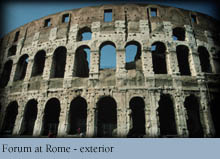 After the civil wars of the firts century BCE and with the rise of Augustus, the city was rebuilt on an even more monumental scale. While always paying hommage to the traditions and customs of the past, Augustus gave the new Rome a new luster and aesthetic dimension. He also coopted many of the traditional sanctuaries and festivals to him imperial ideology, often encapsulated in the slogan, Pax Romana (ÑThe Peace of Romeæ) or Pax Augusta (ÑThe Augustan Peaceæ). The summit of the Palatine hill was the site of the imperial palace, and it communicated directly with the Forum and the Capitoline by a series of paths. In addition he initiated new imperial building programs, including the Forum Augusta, alongside the earlier Forum (usually called the Forum Romanum). Subsequent emperors would follow suit by adding their own fora and public works programs for the good of the city and the glory of the emperor. For example, the Colosseum (or Flavian amphitheater) was begun by the emperor Vespasian and dedicated under his son Titus, in the year 81. Vespasian had been the general in charge of the Roman armies in the early years of theJewish revolt, and he was succeded by Titus when he became emperor in 69. On Titus' victorious return to Rome in 72, Vespasian dedicated the triumphas arch to Titus that now serves as one of the main entrances into the Forum. Among its reliefs depicting Titus' accomplishments is the famous, and poingant, scene of his soldiers carrying the great Menorah away from the Temple in Jerusalem at the end of the Jewish War.