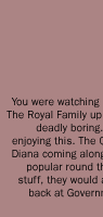 a:  They held all of the cards. They didn't even tell us which game they were playing with the cards. We just watched them as head of a table. We were not invited in at all. We were allowed to take photographs of the Queen opening fetes and going behind a counter selling jam once a year, but that was it.