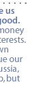 We'll have to think about this. Americans never gave us money for anything good. If they give money, they give money while pursuing their own interests. This issue needs a detailed study, we need to establish what, exactly, they want from us. They defend their own interests and we pursue our goals. As they say in Russia, friendship is friendship, but let's split the cash. ...